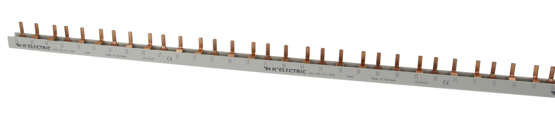 | Kurzbeschreibung | Steg-Verdrahtungsschiene, 3-polig, 10mm², 57TE, zzgl. Metallzuschläge |