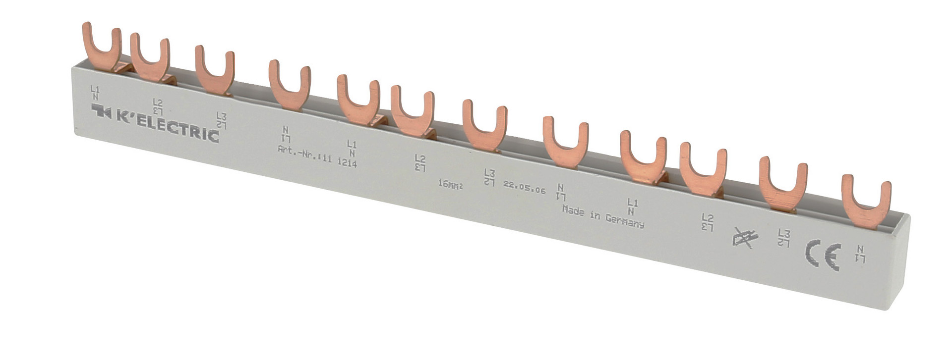 | Kurzbeschreibung | Gabel-Verdrahtungsschiene, 4-polig, 16mm², 12TE, zzgl. Metallzuschläge |