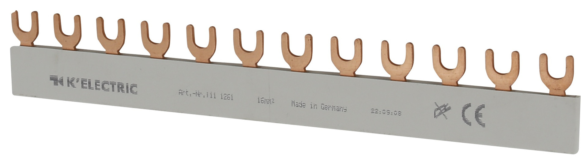 | Kurzbeschreibung | Gabel-Verdrahtungsschiene, 1-polig, 16mm², 12TE, iso, zzgl. Metallzuschläge |
