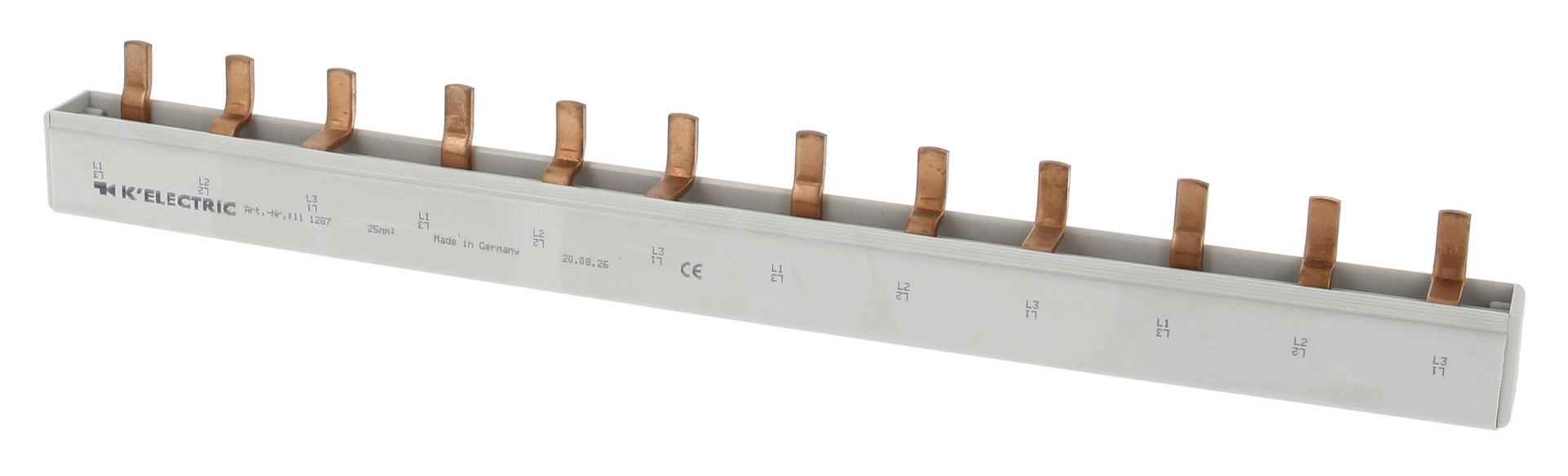 Steg-Verdrahtungsschiene, 3-polig, 25mm², 12TE, 27mm, zzgl. Metallzuschläge