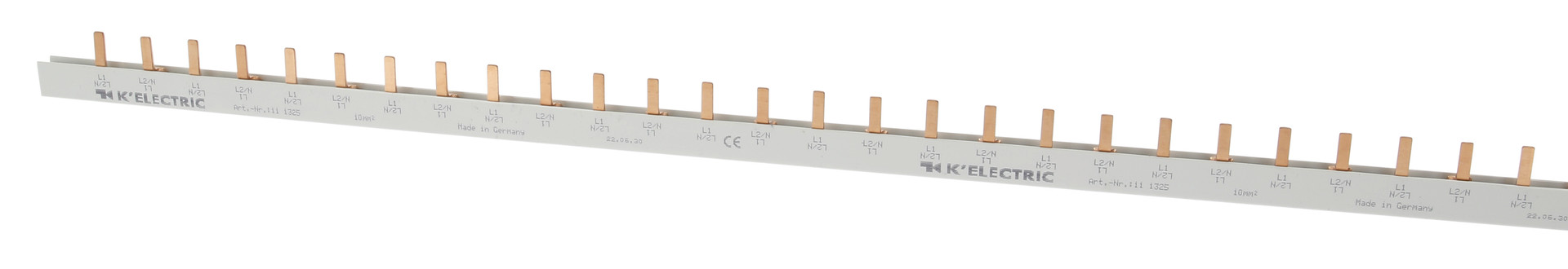 | Kurzbeschreibung | Steg-Verdrahtungsschiene, 2-polig, 10mm², 56TE, 17,6mm, zzgl. Metallzuschläge |