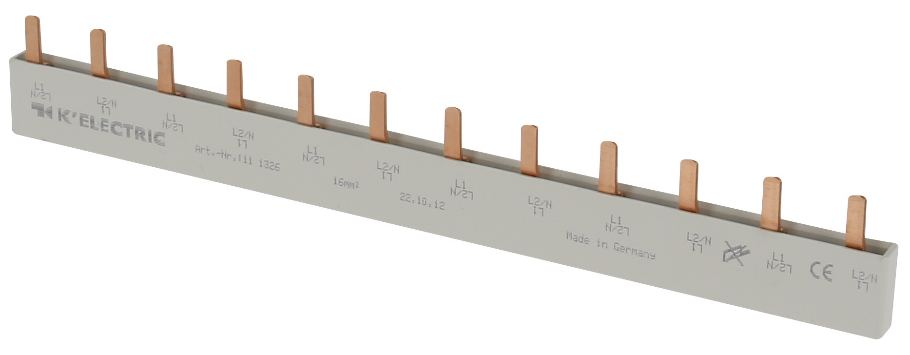 | Kurzbeschreibung | Steg-Verdrahtungsschiene, 2-polig, 16mm², 12TE, zzgl. Metallzuschläge |