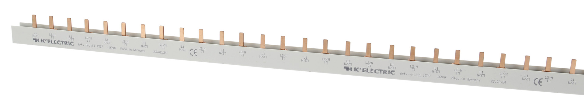 | Kurzbeschreibung | Steg-Verdrahtungsschiene, 2-polig, 16mm², 56TE, 17,6mm, zzgl. Metallzuschläge |