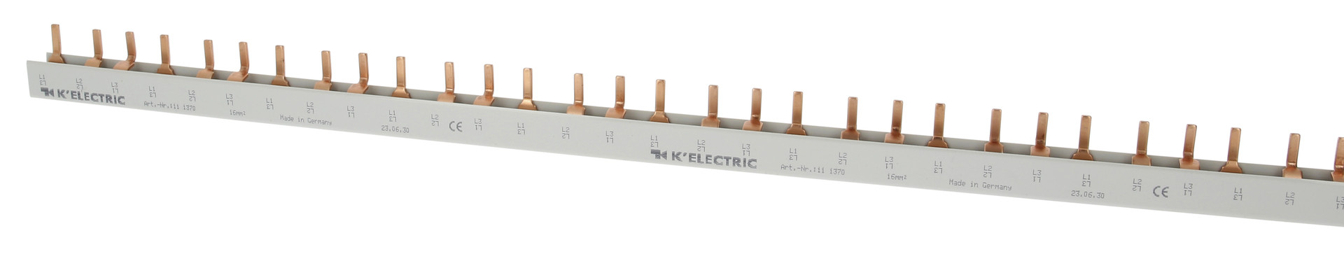 | Kurzbeschreibung | Steg-Verdrahtungsschiene, 3-polig, 16mm², 57TE, zzgl. Metallzuschläge |