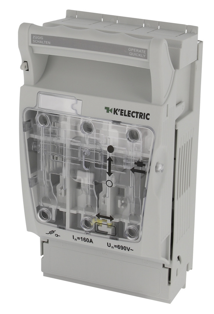 | Kurzbeschreibung | NH 00 Reiter-Lasttrennschalter 160A, 3pol., KE Abgang unten |