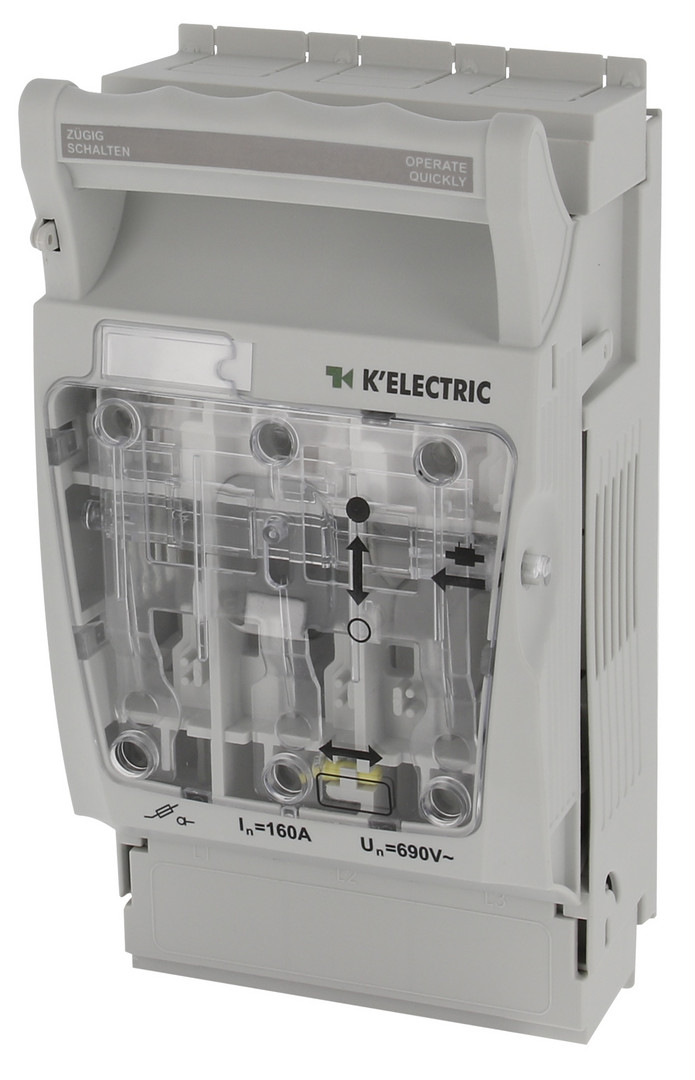 | Kurzbeschreibung | NH 00 Reiter-Lasttrennschalter 160A, 3pol., KE Abgang oben |