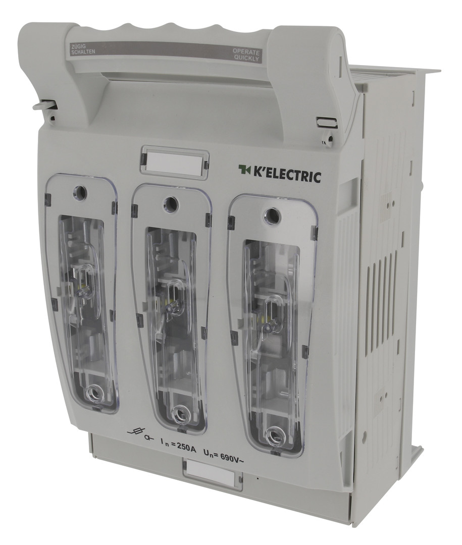 | Kurzbeschreibung | NH 1 Reiter-Lasttrennschalter 250A, 3pol., KE Abgang oben |