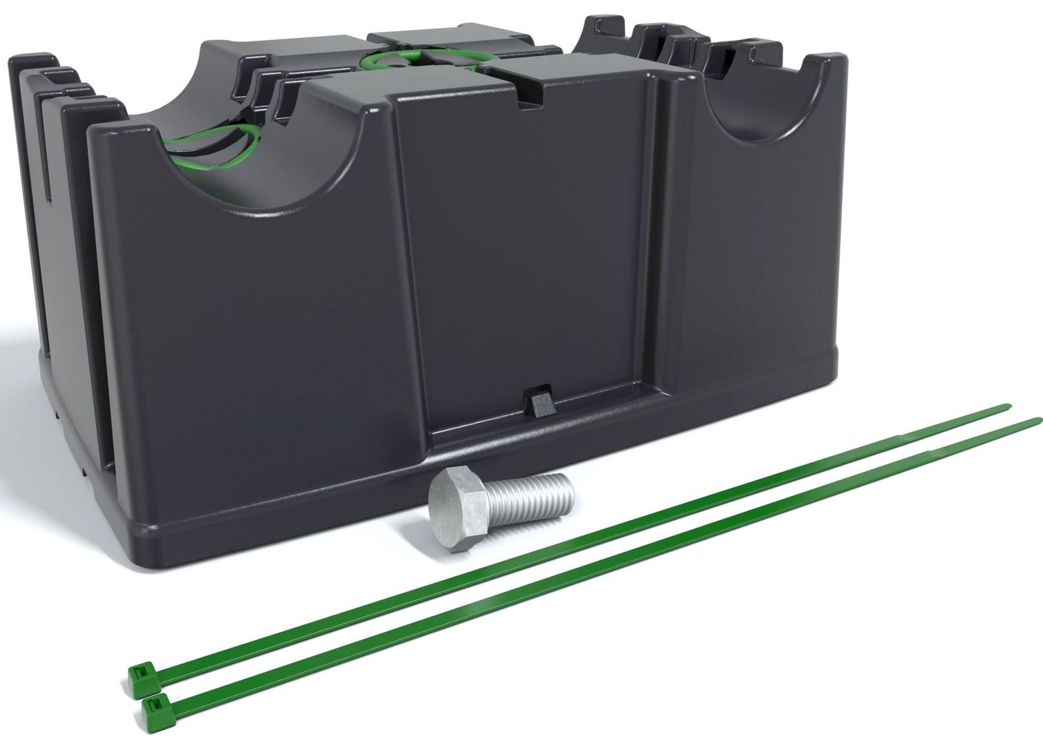 PVX Multistrap+ dient als Auflager für Kabelrinnen bis 300m Breite - die M8er Schraube zur Befestigung ist enthalten. Weiterhin können bis zu 2 Kabelrohre mit Durchmesser 16-31 mm fixiert werden - Kabelbinder sind inklusive. Somit bietet der Multistrap+ eine flexible, stabile und benutzerfreundliche Lösung für Ihre Installationen auf dem Flachdach. Maß: L 168 x W 107 x H 75 mm. Material: PE und ASA.