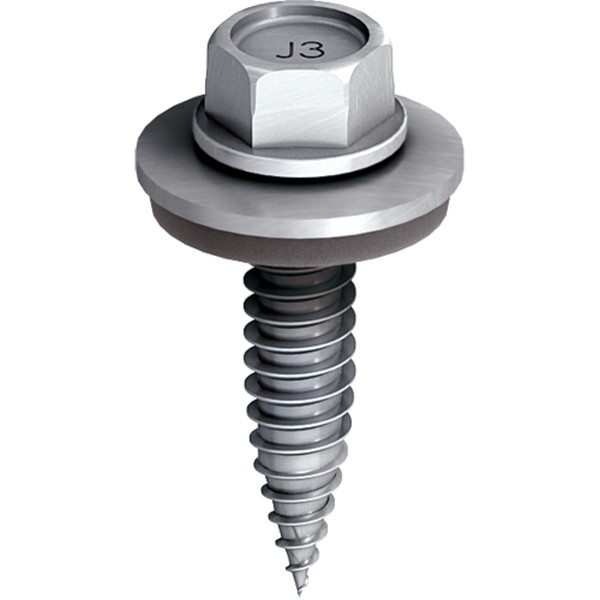 Gewindeformende Sechskantblechschraube 5,5x25 mm. Befestigung von der CarrierRail auf dünnwandigen Metallprofilen für PV-Anlagen, Für eine spanlose Verarbeitung, zugelassen für Stahlblech ab 0,4 mm und für Aluminium ab 0,5 mm bis 1,25 mm Stärke. Mit bauaufsichtlicher Zulassung. Material: Edelstahl A2, EPDM