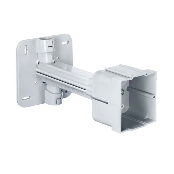 zur sicheren Befestigung von Steckdosen und vielem mehr, bei Außendämmung von Wänden und Decken, mit 2 Schraubdomen, Norm-Kombinationsabstand 71 mm Teleskop-Gerätedose (1159-61). Für die sichere Installation von Leuchten, Bewegungsmeldern und vielen weiteren Geräten in und an gedämmten Fassaden. Für heutige Dämmstärken optimiert, ermöglichen die Teleskop- Produkte vielfältige Anwendungen in Dämmungen mit Stärken von 80 bis 200 mm. Die zwei Rohreinführungen des Grundträgers gewährleisten einen sicheren Rohranschluss, die im Trägerarm integrierte Leitungsführung sorgt für einen einfachen und schnellen Leitungseinzug. Tiefe: 50 mm | Anwendungsgebiet: Installation an oder in der gedämmten Außenfassade | Länge: 68 mm | Breite: 70 mm