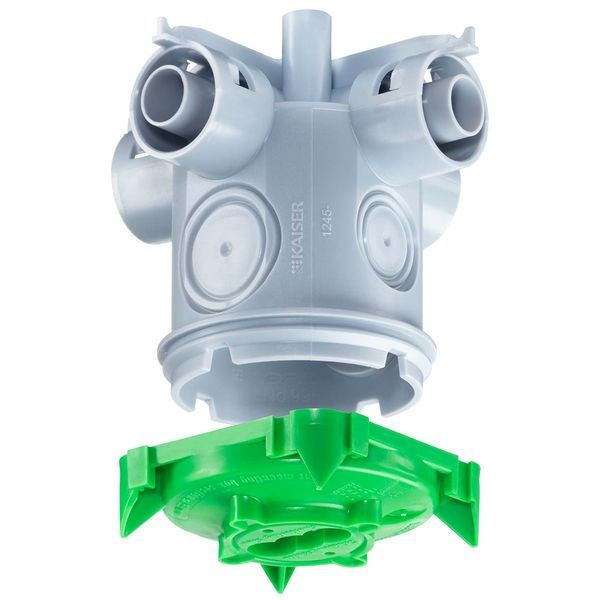 | Kurzbeschreibung | Betonbau Decken-Verbindungsdose, mit Putzhaut, Auslassöffnung Ø 35 mm, mit 4 Schlagkupplungen, Tiefe 99 mm |