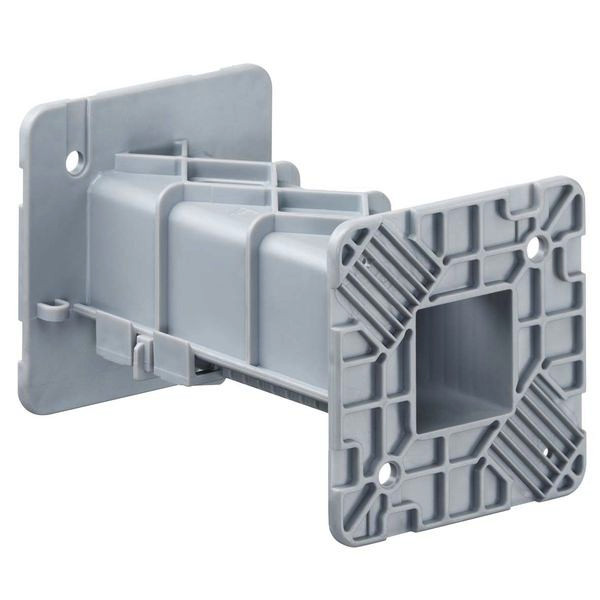 Befestigung durch Heißkleber auf dem Schaltisch Universal-Aufstockelement 105 bis 170 mm für Klebebefestigung (1261-06). Universal-Aufstockelement zur Überbrückung der Wandstärken über 105 mm und Abstützung von Gerätedosen bei Einbau auf der Gegenschalungsseite. Mit verschiedenen Größen können in 5 mm Schritten Höhen von 105 mm bis zu 300 mm (zzgl. Dosenmaß) überbrückt werden.