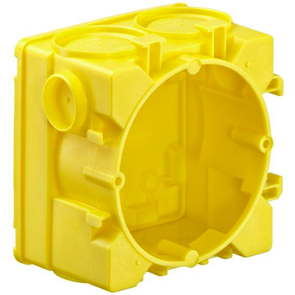 1264-61: 2 bis Ø 16 mm, 4 bis Ø 32/40 mm B2 Geräte-Verbindungsdose ohne Putzhaut, Tiefe 48,5 mm (1262-61). B2-System zur Installation in der liegenden Werksfertigung. Mit wenigen Komponenten können alle Installationsaufgaben gelöst werden. Die Gerätedosen sind selbstklebend und das Zubehör rundet das Programm praxisorientiert ab.