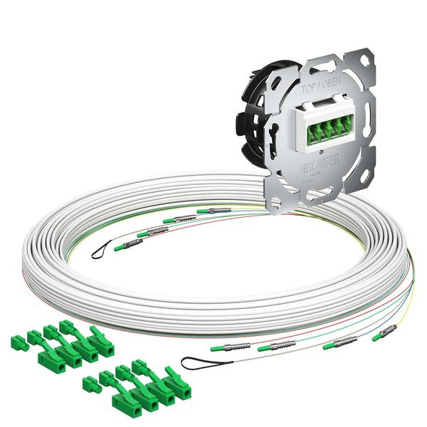 Teilnehmeranschluss (Gf-TA) E3S Connect®, Unterputz, 4xF, LC/APC DX, L=15m, Gf-GV (4250035). Spleißkassetten Anzahl: 1 | Faseranzahl: 4 | Kabellänge: 15 m