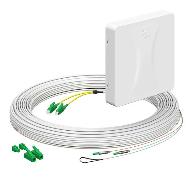 Teilnehmeranschluss (Gf-TA) E3S Connect®, Aufputz, 2xF, LC/APC DX, L=20m, HÜP (4252036). Spleißkassetten Anzahl: 1 | Faseranzahl: 2 | Kabellänge: 20 m