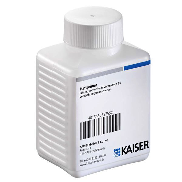 Haftprimer 250 ml, lösungsmittelfrei (9000-02). Der KAISER-Haftprimer ist ein hochwertiger lösungsmittelfreier Voranstrich zur Optimierung der Haftbarkeit aller KAISER Dichtungsmanschetten auf saugfähigen, mineralischen Untergründen wie z. B. Mauerwerk, Beton, Gipskarton oder Holzwerkstoffen. Der selbstklebende Haftprimer ist wasser- und wärmestandfest und lässt sich zusätzlich z. B. auch auf EPS, EPS oder XPS einsetzen.