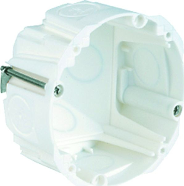 Gerätedose für schweizer Geräteeinsätze Fräsloch Ø 83 mm nach beigefügter Schablone, für Plattenstärke 7 - 40 mm, zum Aufbau von Kombinationen, Mittenabstand 60 mm, 8 Ausbrechöffnungen Ø 20 mm, halogenfrei