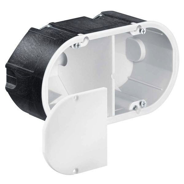 Electronic-Dose HWD 90 (9462-94). Die Electronic-Dose HWD 90 erhält die Feuerwiderstandsklasse der Wand (EI30-EI120) und schafft Installationsraum für elektronische Schaltgeräte, Datendosen, Leitungen und Klemmen. Die Electronic-Dose ermöglicht die Belegung sowohl mit Leitungen als auch mit Installationsrohren bis M25. Anwendungsgebiet: Für Einbaugeräte | Anwendungsgebiet: Für elektronische Komponenten (KNX-Aktoren, Relais etc.) | Halogenfrei: Ja | Installationsart: Brandschutz Gebäude | Tiefe: 70 mm | Fräsloch Ø: 2 x 74 mm