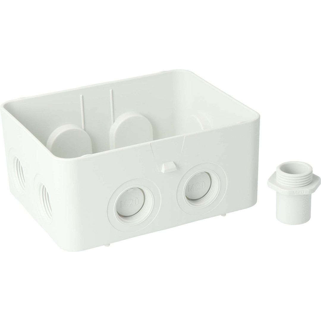 Abzweigkasten AK2-IP65 M20 mit Sockel (AT2292). Halogenfrei: Ja | Länge: 120 mm | Tiefe: 45 mm | Breite: 95 mm | Farbe: lichtgrau | Max. Leiterquerschnitt: 6 mm² | Bemessungsspannung: 690 V | Schutzart: IP65 | Metrischer Gewindeanschluss: M20 | Zubehör Kabelverschraubung: M20 (Art.-Nr. 1555.20.13)