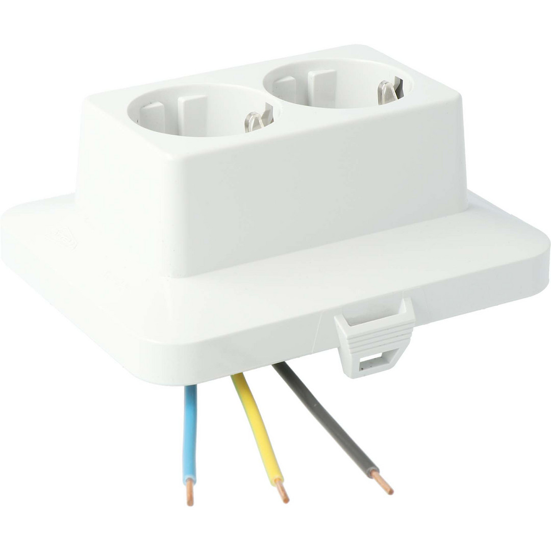Steckbar Frontteil AK2, 2x Schuko, grau, in: 3pol H07V-U, 125x100x50 mm (AT2293).
