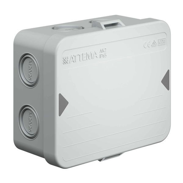 | Kurzbeschreibung | Aufputz IP65 Kabelabzweigkasten AK2, 8 Eingänge für M20/M25, 120x95x45 mm, grau |