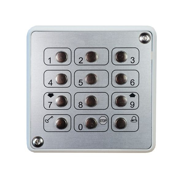 Diese vandalismusgeschützte Metalltastatur wird als Bedienteil zu den Codierschaltgeräten Versa 4 und Versa 50 eingesetzt. Der Rahmen besteht aus Alu-Druckguss und ist hellgrau pulverbeschichtet. Die Frontplatte und Tasten bestehen ebenfalls aus Aluminium und sind sehr widerstandsfähig. Das Gerät gibt bei Tastendruck einen Piepton als Bestätigung aus. Die Schrauben zum Öffnen bzw. Demontieren der Tastatur können nur per beiliegendem Schraubereinsatz geöffnet werden. Das Anschlusskabel, welches zur Auswerteeinheit geführt werden muss, hat eine Länge von 5 Metern. Abmessungen: 75x75x14mm