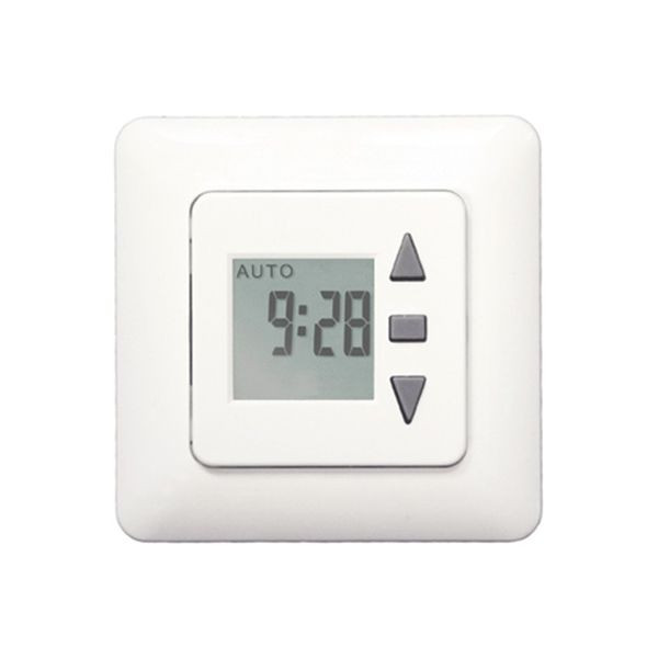 Die Rollladenzeitschaltuhr Tastor Konsum kombiniert höchste Bedienerfreundlichkeit mit Komfort und einem sehr guten Preis-/ Leistungs-Verhältnis. Er bietet in der Standardausführung ein Tagesprogramm und eine Zufallsfunktion. Die Bedienung und Einstellung erfolgt über die 3 Tasten auf der Vorderseite. Beides ist sehr intuitiv und leicht zu erlernen. Das LCD-Display ist klar strukturiert und somit gut abzulesen. Optisch hält sich der Tastor Konsum sehr zurück und passt so gut in die meisten Umgebungen. Die standardisierte Bedienfläche (50x50) kann mit den entsprechenden Zwischenrahmen in fast alle gängigen Schalterprogramme integriert werden. Der Klemmblock für den Netz- bzw. Motoranschluss ist steckbar und kann so ganz einfach angeschlossen und im Nachgang eingesteckt werden. Bei der Lieferung liegt dem Gerät ein Standardrahmen in reinweiß bei. Farbe der Bedienfläche: reinweiß