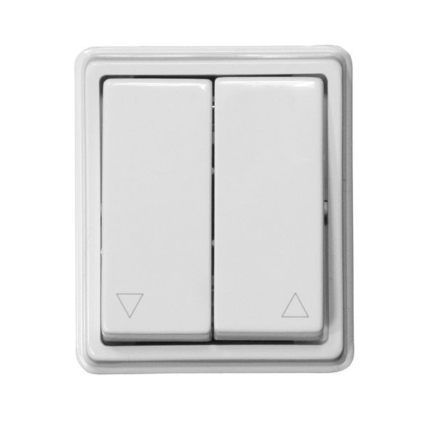 Ein einfacher Aufputz-Taster zum Ansteuern von Rollläden oder Jalousien. Der Taster hat eine besonders kleine Bauform. Abmessungen: 65x55x27mm. Farbe: reinweiß
