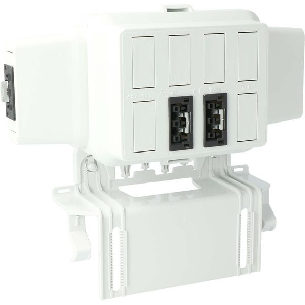 Steckbar 100% Gehäuse AK2, WAGO WINSTA® MIDI, in: 3pol sw, out:2x 3pol sw L1, inkl. Montageplatte gewinkelt (AT4746).