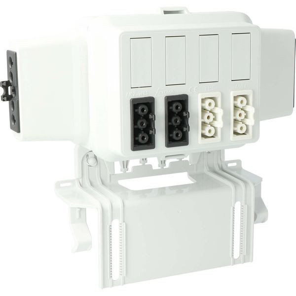 | Kurzbeschreibung | Steckbar 100% Gehäuse AK2, Wieland GST18, in:5pol sw, out:je 2x 3pol sw L1/ ws L2, inkl. Montageplatte gewinkelt |