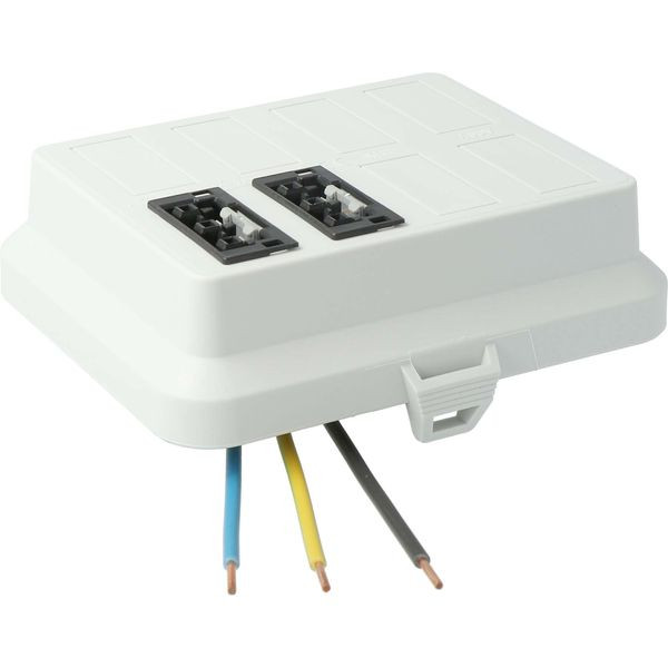 Steckbar Frontteil AK2, WAGO WINSTA® MIDI, in: 3pol H07V-U, out:2x 3pol sw L1, 125x100x42 mm, lichtgrau (AT7703).