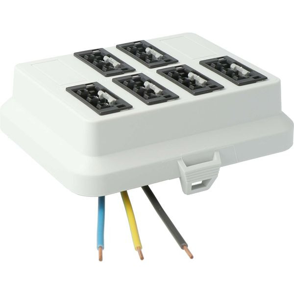 Steckbar Frontteil AK2, WAGO WINSTA® MIDI, in: 3pol H07V-U, out:6x 3pol sw L1, 125x100x42 mm, lichtgrau (AT7708).