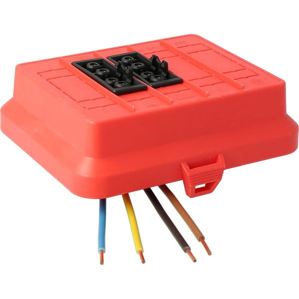 | Kurzbeschreibung | Steckbar Frontteil AK2, Wieland GST18,, in:4pol H07V-U, out:2x4pol sw L1+L2, 125x100x42 mm, rot |