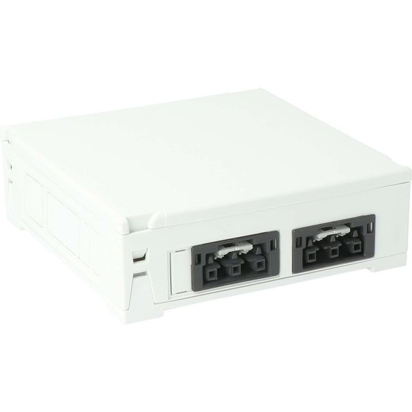 Steckbar Gehäuse PD, WAGO WINSTA® MIDI, in: 3pol H07V-U, out:2x 3pol sw, 120x120x40 mm, lichtgrau (AT3214).