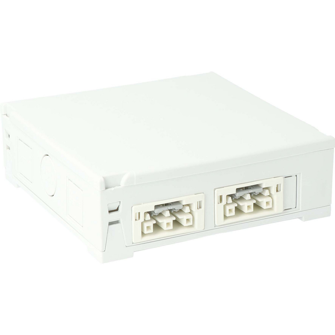 Steckbar Gehäuse PD, WAGO WINSTA® MIDI, in: 2x3pol H07V-U, out:je 2x 3pol sw/ws, 120x120x40 mm, lichtgrau (AT3216).
