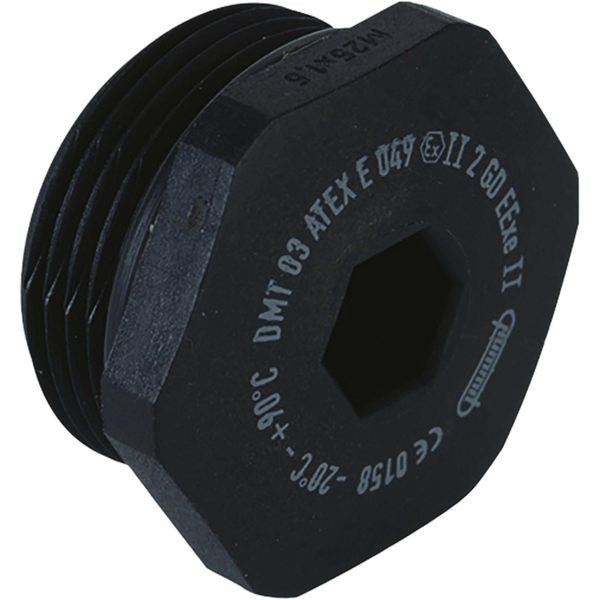 | Kurzbeschreibung | Verschlussschraube 6-kt. Kst. Pg11, Ex e II, Schwarz RAL 9005,mit O-Ring NBR |