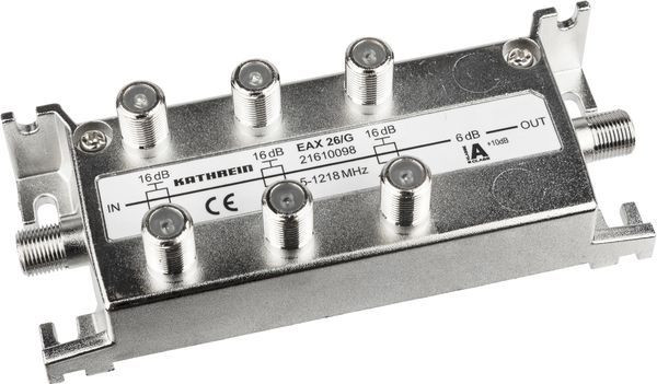 6fach-F-Endabzweiger 5-1218 MHz, F-Connectoren, Trennkondensatoren an Ein- und Ausgaengen, Abzweigdaempfung typ. 15,5 15,0 dB, Schirmungsklasse A, Vodafone- KDG-Freigabe
