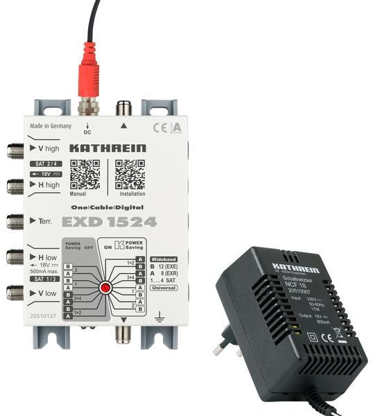 Einkabel-Multischalter, Eingaenge 1x 5-862 MHz und 4 x 300-2350 MHz, 2 Ausgaenge mit bis zu 12 Userbaendern, kaskadierbar, erw. Einkabel-Standard, PIN-Code, KPS, AGC