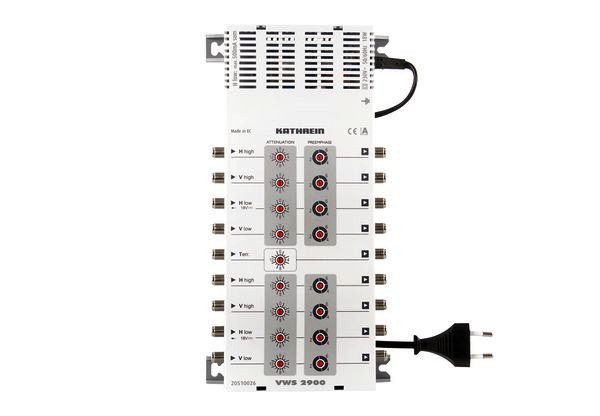 Der VWS 2991 wird als kaskadierbarer Verteilnetzverstärker zur Pegelanhebung und zum Schräglagenausgleich in Multischalter-Kaskaden eingesetzt. Multischalter-Verteilnetzverstaerker, 47-862 u. 8 x 950-2150 MHz, 9 Eingaenge 9 Ausgaenge, komplett mit Netzteil, Stromreserve fuer LNB-Versorgung typ. 500 mA
