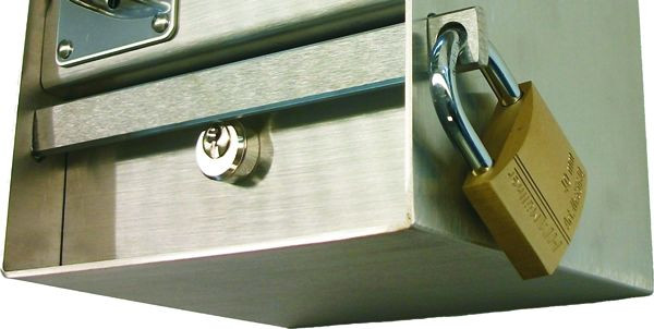 Diebstahlschutz für alle KERN-Münzzeitschalter Nur in Kombination mit einem Münzer lieferbar, als Zusatz. Kann nicht nachgerüstet werden! Diebstahlschutz (Edelstahlbolzen + Bügelschloss)