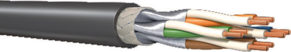 Symmetrisches Datenkabel mit 4 verseilten Paarelementen. Die Leiter bestehen aus eindrähtigem Kupfer. Der Schirmaufbau besteht aus einem Gesamtschirm aus Kupferdrahtgeflecht und Einzelschirmen für die Aderpaare, was hervorragende elektrische Eigenschaften garantiert.