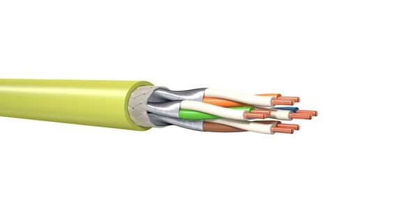 Symmetrisches Datenkabel mit 4 verseilten Paarelementen. Die Leiter bestehen aus eindrähtigem Kupfer. Der Schirmaufbau besteht aus einem Gesamtschirm aus Kupferdrahtgeflecht und Einzelschirmen für die Aderpaare, was hervorragende elektrische Eigenschaften garantiert.
