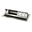 Tischeinbaugehäuse,;Leermodul mit 3 x Strom (Schuko),;Edelstahl gebürstet, individuell;bestückbar mit Konnect flex 45 click;Blenden (7464000xxx)