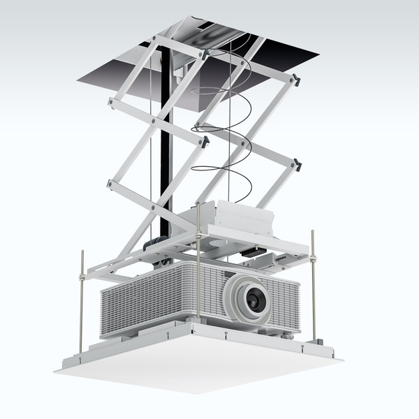 Deckenlift Pro DGUV 120. Installationsfreundlicher motorischer Deckenlift für große, schwereProjektoren mit einem Gewicht von bis zu 50 kg, maximale Hublänge 120 cm. Vorbereitet für die Prüfung gemäßDGUV/DIN56950-2. Mit zusätzlichem Sicherheitsgurt für maximale Sicherheit ausgestattet.Zwei Montagemöglichkeiten:Projektorenspinne (7465000320) mitFeinjustage für Projektoren (bis 30kg) und Deckenabschlussplatte(7465000321) oder Stellflächefür Hochleistungsprojektoren (max. 50kg) inkl. Deckenabschlussplatte(7465000322).Pulverbeschichtet, weiß, RAL 9003,GS zertifiziert