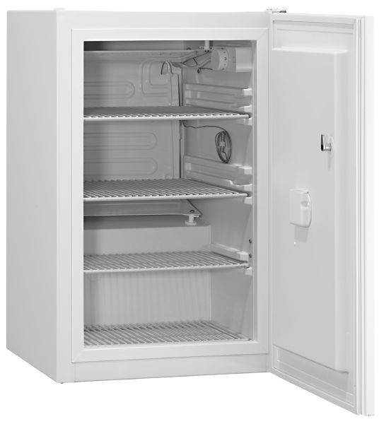mechanische Steuerung, stufenlose Temperaturwahl -15 bis -22° C, konstante Temperatur: hält die Innenraumtemperatur auch bei höheren Umgebungstemperaturen von bis zu +32 °C, Istwert-Thermometer, statisch belüftet, hermetisch gekapselt, energiesparend, geräuscharm, servicefreundlich, manuelle Abtauung, 4 Roste belastbar bis je 25 kg, Tür mit leicht austauschbarem Kunststoff-Magnetdichtungsrahmen, abschließbar, Türanschlag rechts wechselbar, ein- und unterbaufähig
