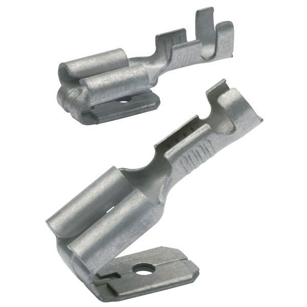 Für fein- und feinstdrähtige Leiter. Mit Rillenprägung für verbesserte Kontakteigenschaften. 4,8x0,8 mm, 0,5-1 mm² mit Abzweig. Verzinnt. Werkstoff CuZn (Messing).