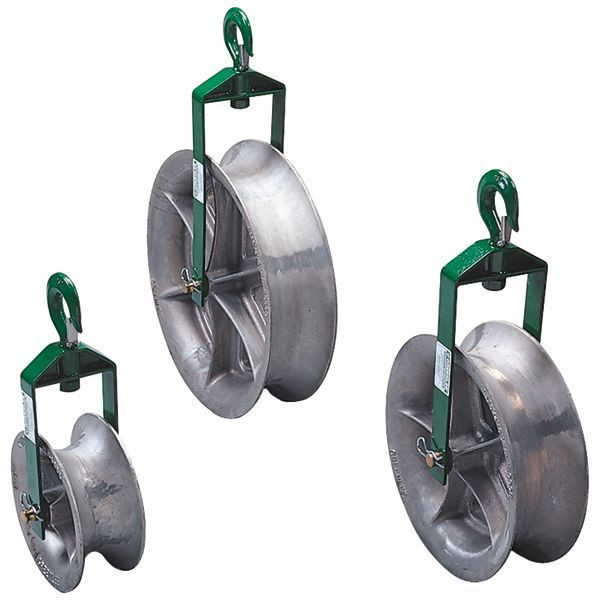 Zubehör für Kabelzugwinde 6800-22 CE. Stahlrahmen mit geschmiedeter Öse 25 mm, Rollen aus Aluminiumlegierung mit selbstschmierenden Lagern. Max. Belastbarkeit 3,6 t. Karabinerhaken zum Einhängen. Ablenkrollen Durchmesser 125mm
