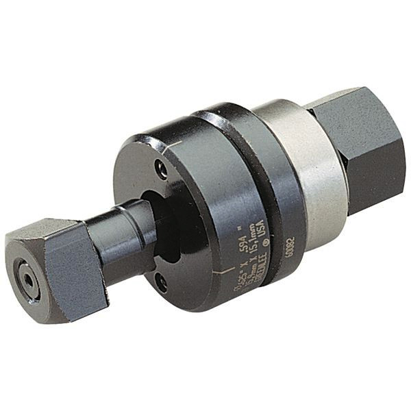 Geeignet für Stahlblech (St37), Kunststoff und Aluminium bis zu 2,0 mm Stärke. Komplettsystem bestehend aus Stempel, Matrize, Zugschraube, Kontermutter und Kugellagermutter. Betätigung manuell und hydraulisch. Vorbohren mit Durchmesser 12,7 mm Vorbohrer 50344102.