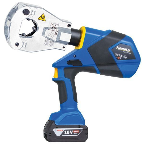 Das patentierte Zentriersystem gewährleistet jederzeit optimale Pressergebnisse. Geschlossener Presskopf - ideal beim Freileitungsbau. Mit automatischem Rücklaufstopp (ARS) für schnelle Presszyklen. Geeignet zum Verpressen von Rohrkabelschuhen und Verbindern Normalausführung und fein- und feinstdrähtige Leiter bis 300 mm². Vierdornpressung mit patentiertem Zentriersystem, keine Einsätze erforderlich. Geschlossener Presskopf mit Bolzenverriegelung, aufklappbar, drehbar. Elektronische Steuerung und Überwachung des Pressvorganges. Integrierte Druckmessung mit optischen und akustischen Signalen im Fehlerfall. Auswertefunktion über Bluetooth, optische Schnittstelle und USB-Adapter. Ein-Knopf-Bedienkonzept zur Steuerung aller Werkzeugfunktionen. Ergonomisches 2-Komponenten Kunststoffgehäuse mit Softeinlagen. Ausgewogene Schwerpunktlage für einfaches Handling. LED zur Arbeitsraumbeleuchtung. Leistungsstarker 18V Li-Ion-Akku mit sehr hoher Kapazität. Leistungsstarke Motoren für maximale Arbeitsgeschwindigkeit. 2-Stufen-Hydraulik mit schnellem Vorlauf und Krafthub. Energiesparfunktion durch Motorabschaltung nach erfolgtem Pressvorgang. Motor-Schnellstopp für hohe Anwendersicherheit. Automatischer Rücklauf nach vollendeter Pressung. manueller Rücklauf bei Bedarf. Automatischer Rücklaufstopp (ARS) zur Positionssteuerung bei Mehrfachverpressungen. LED Display zur Darstellung Werkzeugdaten. Multifunktions-LED zur Wartungsanzeige, Ladezustandsanzeige des Akkus und zur Datenübertragung via USB-Adapter. Umweltfreundliches Hydrauliköl, biologisch schnell abbaubar. Lieferumfang: Akku 18 V / 5,0 Ah, Li-Ion (90 Wh) (RALB2EU), Schnell-Ladegerät für 18V Li-Ion-Akkus, 230 V (LGLB1EU), Kunststoffkoffer (KK120NG).