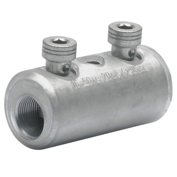 Ideal zum Verbinden gleicher und ungleicher Leiterquerschnitte. Zum Verbinden unterschiedlicher Leitertypen und Materialien nach VDE 0295 Klasse 1 und 2 und Al-Leiter nach DIN 48201 Teil 5. Mit Sichtloch zur Kabeleinschubkontrolle (unterschiedliche Materialien dürfen sich nicht berühren). Spezielles Rillenprofil im Innern zur Zerstörung der Oxidationsschicht beim Verschrauben. Klemmkörper isoliert. Ausführung mit 2 Schrauben. ohne Mittelsteg. Klemmkörper: hochfeste Aluminiumlegierung.